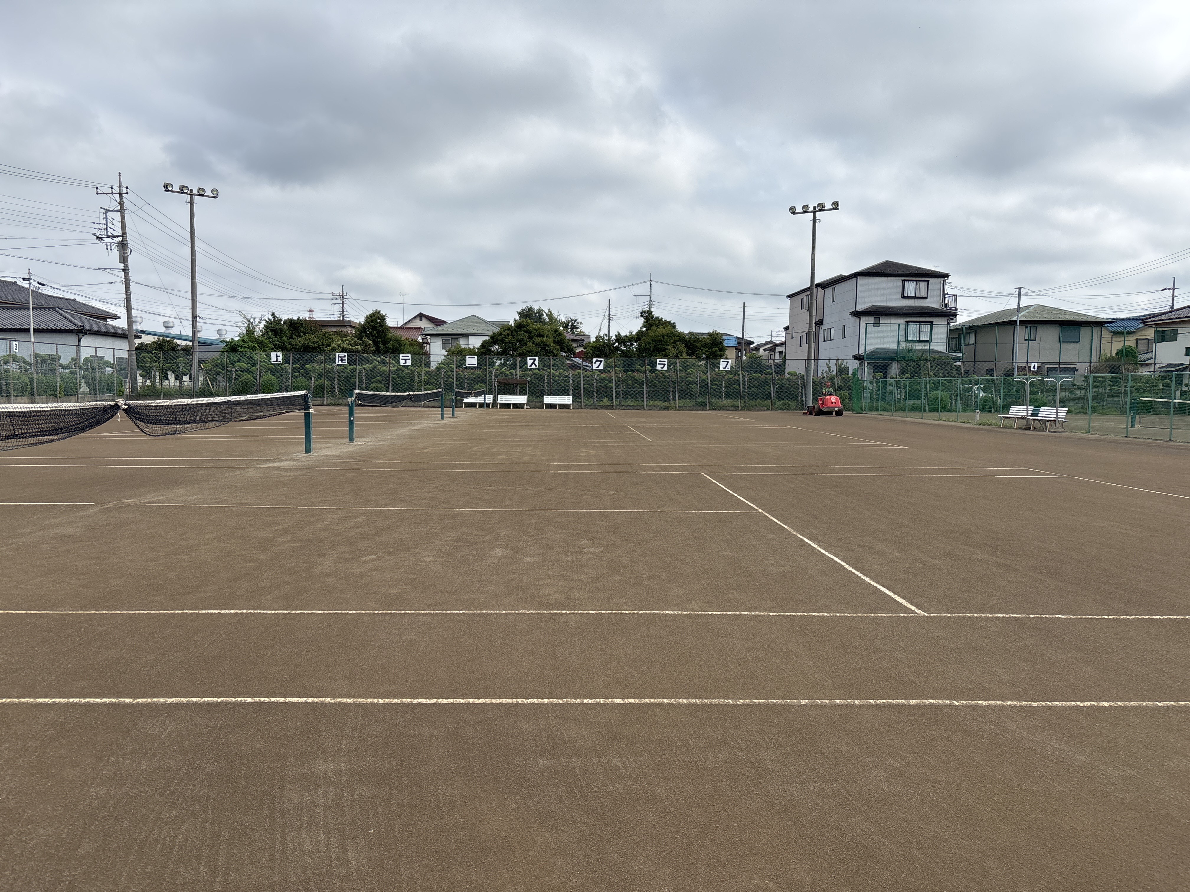 全面、使えません。クレーコートは整備中です