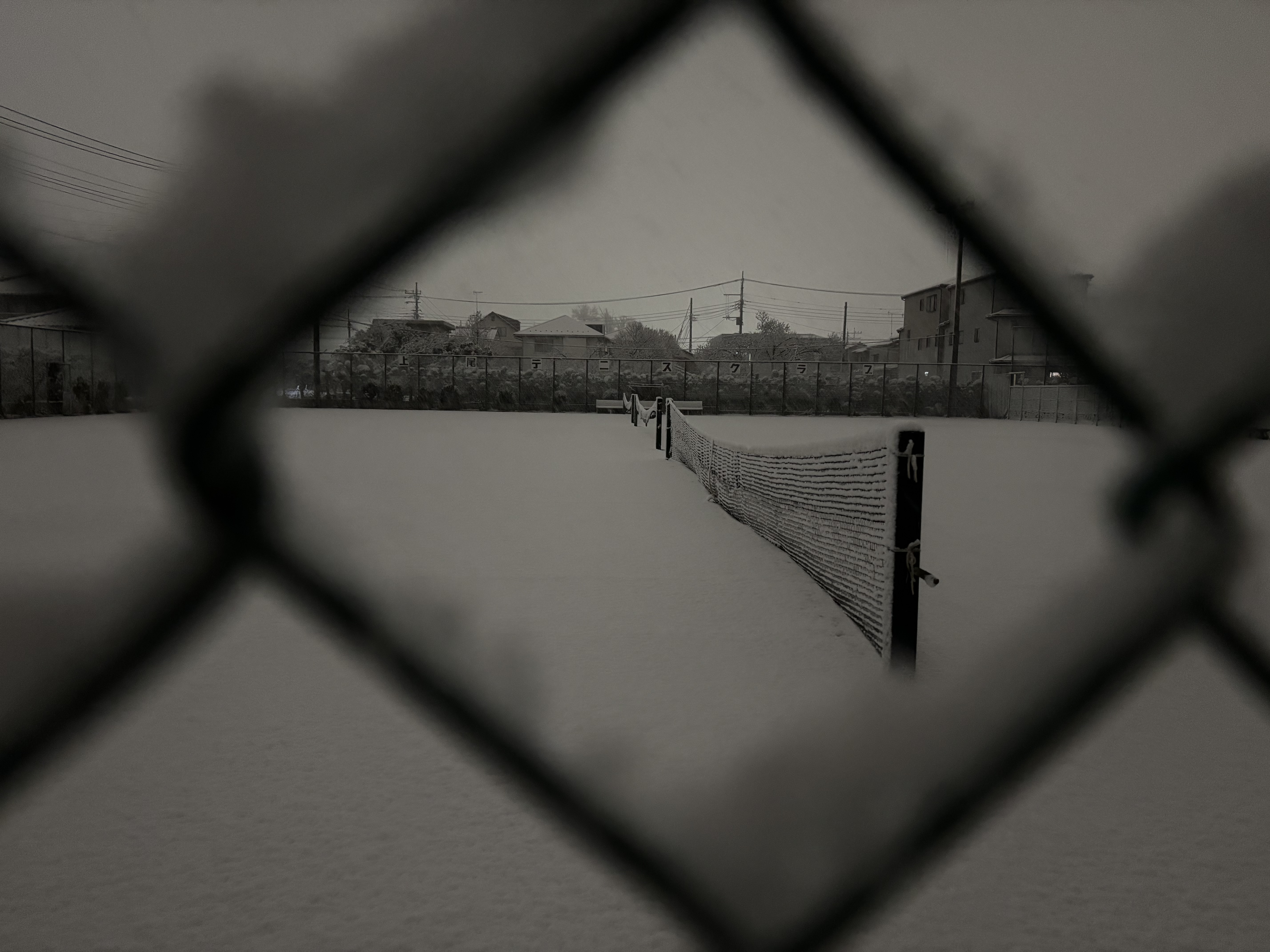 夕方から降った雪はコート全面に積もってしまいました