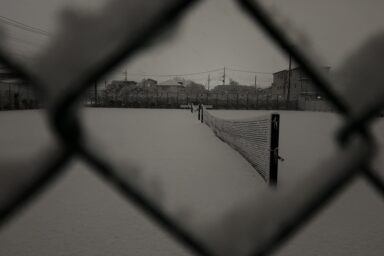 夕方から降った雪はコート全面に積もってしまいました